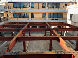 次週、木造の基礎が鉄骨の上に造成開始です。